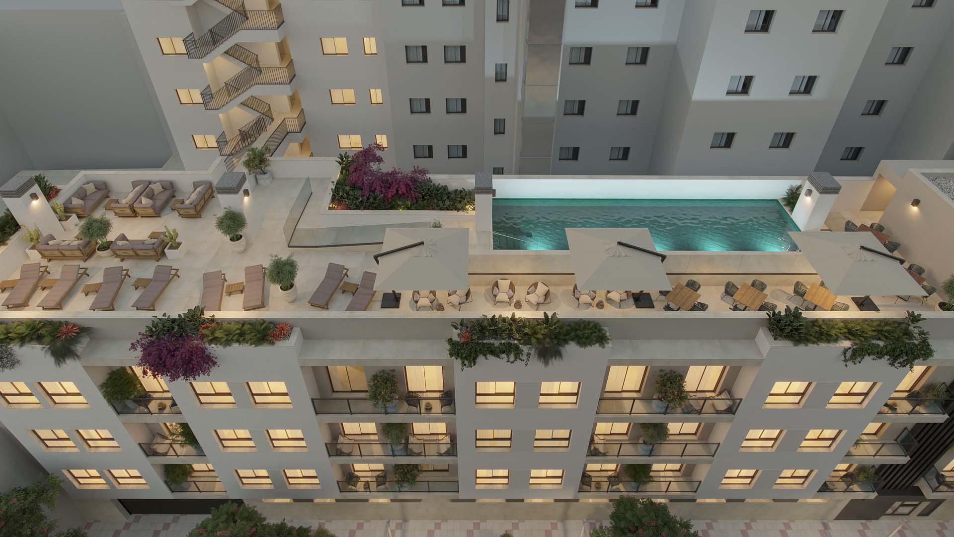 One of Centrum’s most remarkable features is its exclusive panoramic rooftop, a space dedicated to relaxation and leisure. Residents will have access to a private swimming pool with breathtaking city views, as well as an elegant rooftop garden, perfect for unwinding without leaving home.